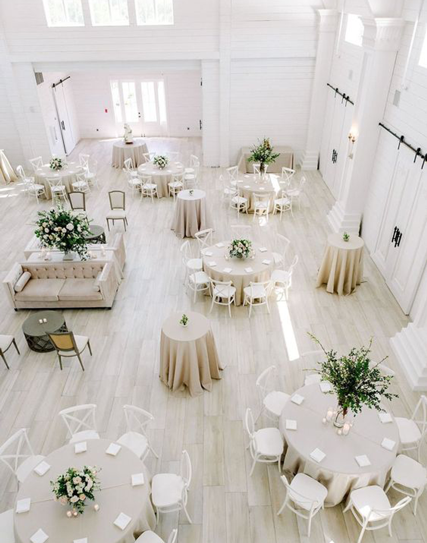 Create a visually appealing and cohesive aesthetic for a wedding ceremony and reception.